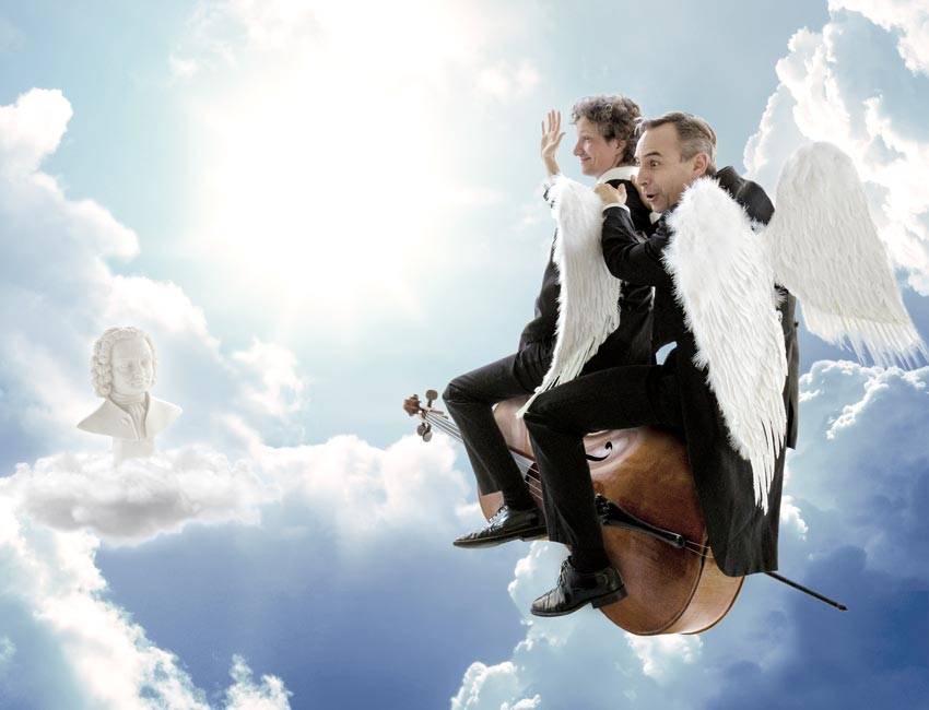 Nach einem tragischen Unfall melden sich die beiden Cellisten des Duo Calva aus ihrem neuen Wohnort zurück. Mit je zwei Flügeln auf dem Rücken hat sich ihre musikalische Spannweite sehr erweitert, und so bieten sie ihrem Publikum auch im neuen Programm ein himmlisches Vergnügen. - Wie in der Tonhalle, aber lustiger! Kurier